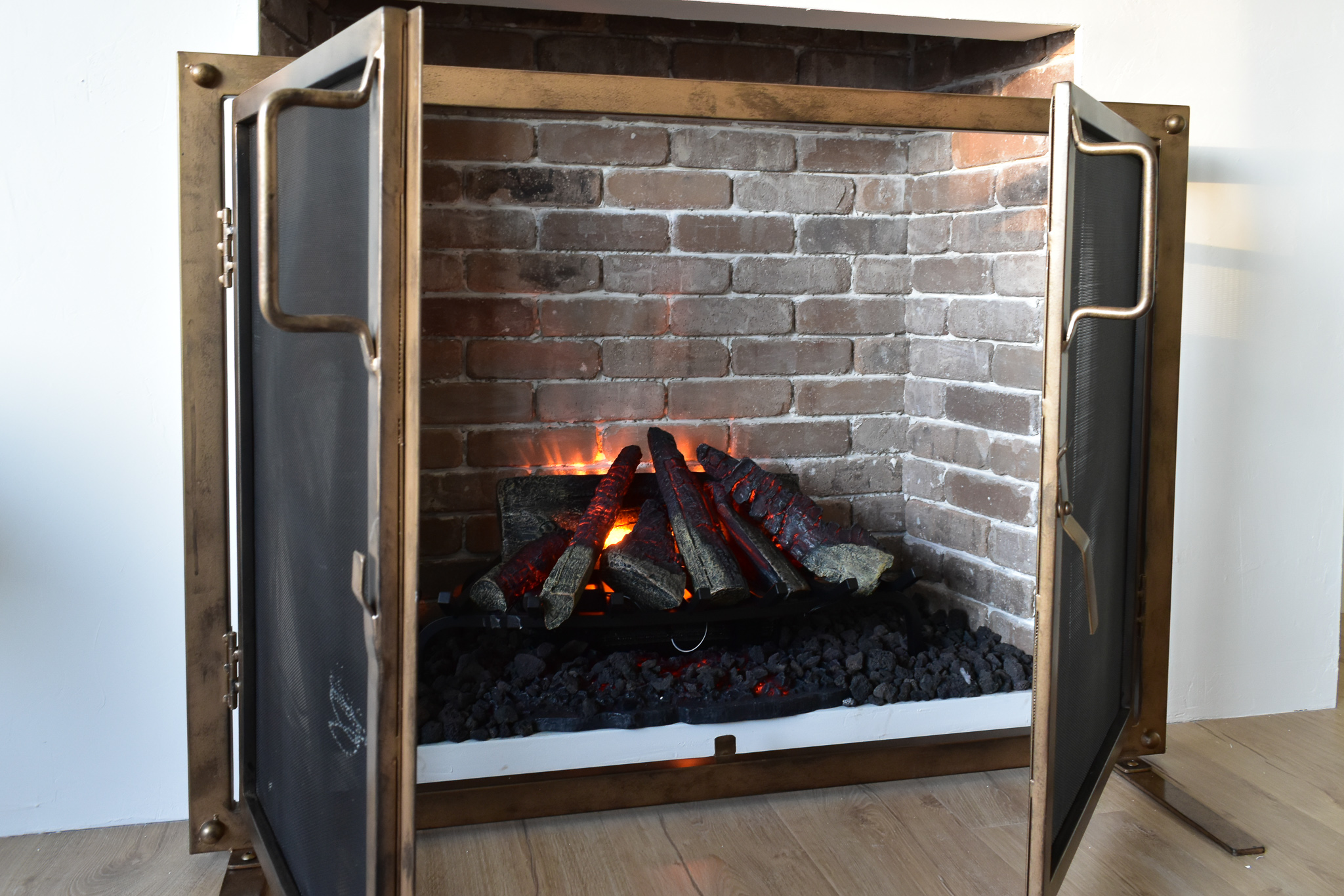 It actually took me a few months to settle on the final design for this fireplace, I had tons of different ideas. Some of them were very extravagant and some of them were pretty simple. As I've talked about before in my previous blog posts, our current house is not our forever home and neither is a high-end luxury house so every time I make renovation and design choices, I take all previously mentioned factors into the consideration. Basically speaking, I imagine the average next owner and make decisions based on that. Considering all the factors, we settled on the plastered fireplace with a brownish brick inside. As for the insert, instead of putting a standard electric fireplace insert, we decided to go with the electric log insert to give it more character.